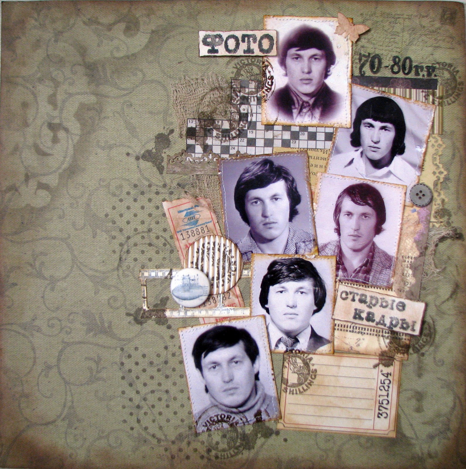 Снова новое задание в блоге Scrap Lifting! Я перестала осознавать время. Так оно быстро летит. На этот раз нужно слифтить страничку замечательной мастерицы Ирины Kliri. У нее, на мой взгляд, очень красивые страницы - многодетальные и сюжеты очень интересные - в общем они рассказывают всегда о моменте. Собственно, к чему и призван был Скрапбукинг. Я долго думала что сделать, решила тоже мужскую, т.к. у нас в семье один мужчина - мой папа))) решила сделать его старые фото на паспорт. В итоге попробовала сделать стиль Херитаж. Уж не знаю получился он у меня или нет... Но вот он - оригинал и мой вариант лифтинга.